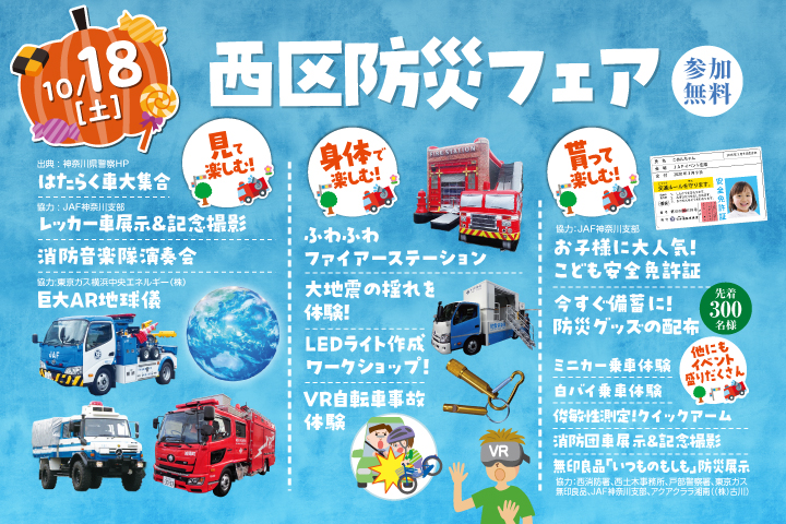 協力:西消防署、西土木事務所、戸部警察署、東京ガス、無印良品、JAF神奈川支部、アクアクララ湘南((株)古川)