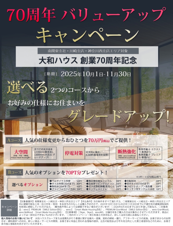 神奈川県内で注文住宅をご契約・ご建築のお客様を対象に