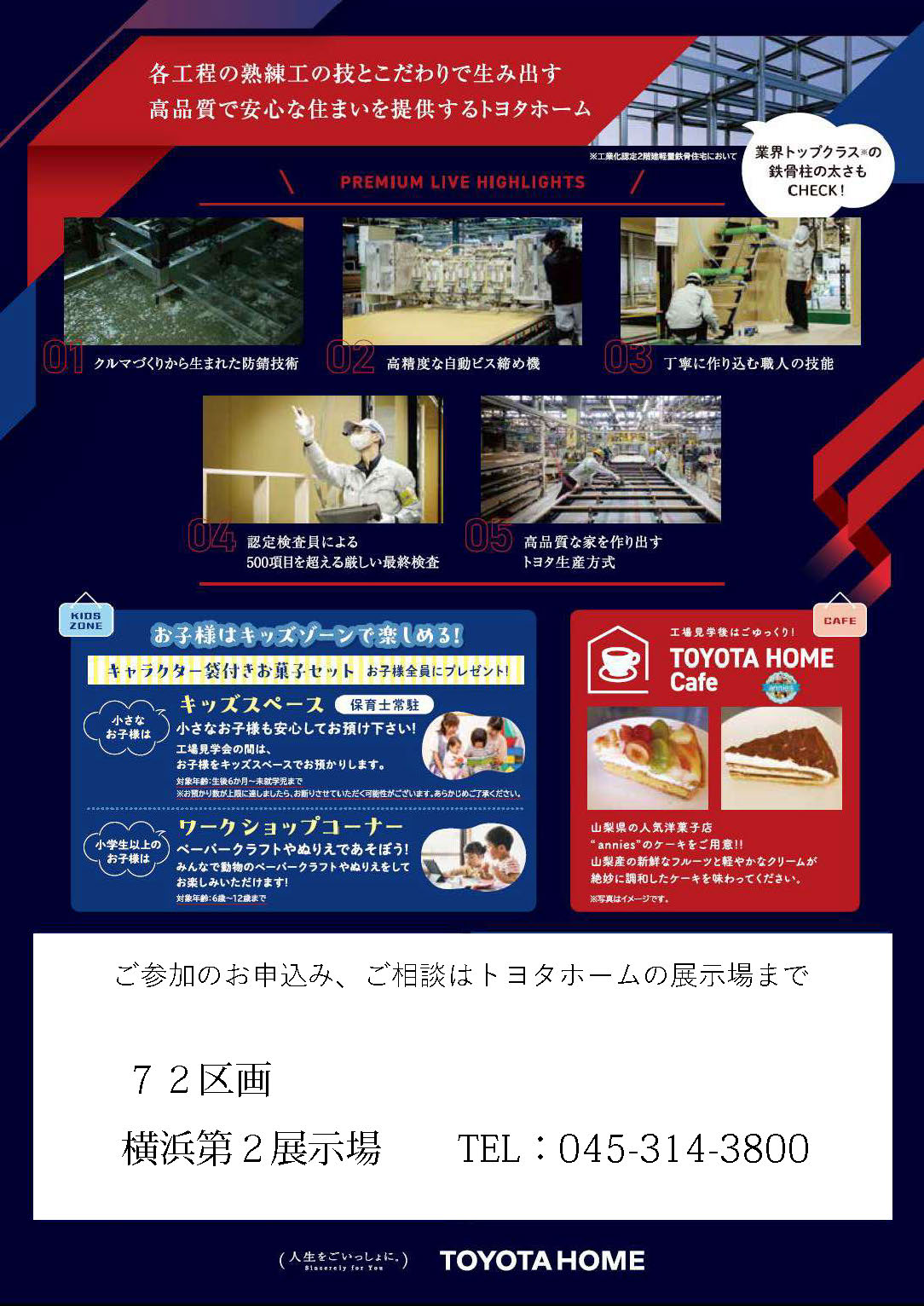 横浜展示場集合、バスで山梨県の稼働している工場へ行き、解説付きで見学できる貴重な機会です。