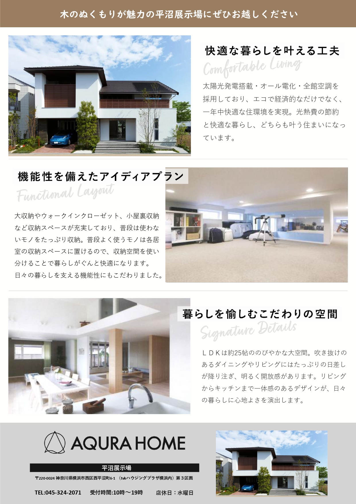 アキュラホームのホームページまたはインフォメーションハウスに置いてあるリーフレットに記載の