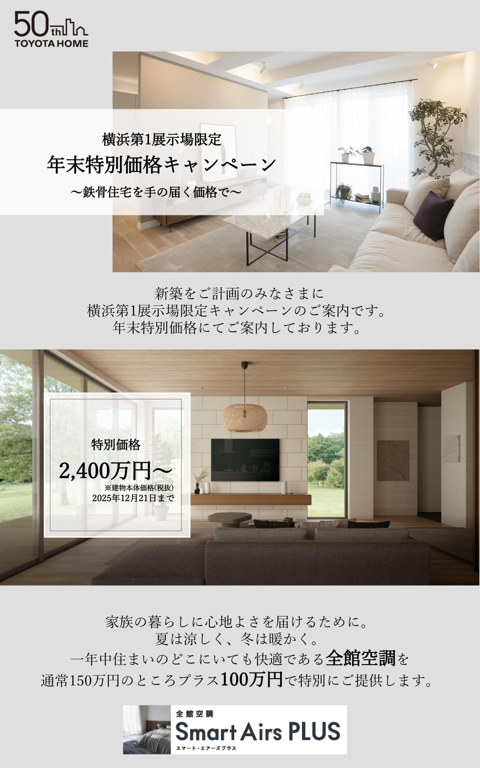 新築をご計画のみなさまに横浜第1展示場限定キャンペーンのご案内です。