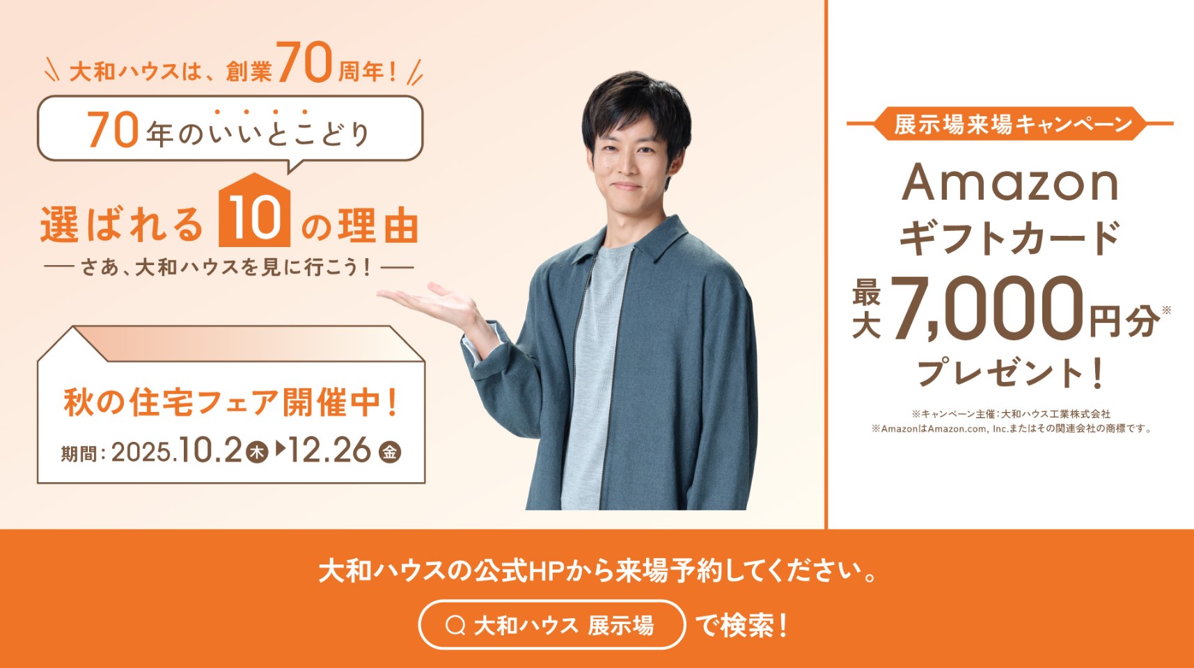 2025 年 10 月 2 日~12 月 26 日の期間中、大和ハウスの公式 WEB サイトから「住宅展示場」に