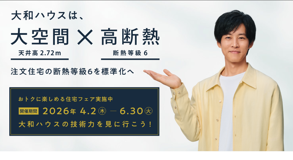 未来基準の「断熱等級6」を標準化。解放感はそのままに、一年中快適な住まいを展示場でご体感ください!