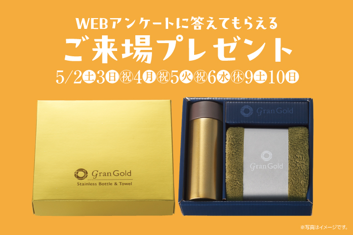 ご回答いただいた方に「グランゴールド真空ボトル&タオルギフト」をプレゼント!