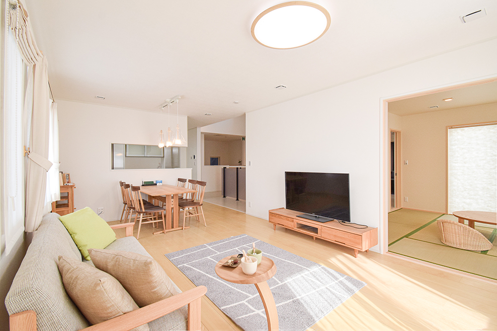 自然の風を取り入れ、冬の暖気を逃がさないパッシブデザイン。1階リビングに大きな吹き抜とオープン階段、廊下にも第二の吹き抜けが有り、2階のホールがその第二の吹き抜けを回廊式に歩けて各部屋へ入れる設定です。大空間の開放的な間取りなのに、館内はいつも快適な温度を保っています。 プラス小屋裏収納と屋上空間も配置。あらゆるお客様のニーズをこのモデルハウス一つで全て観る事が出来ます。 システムキッチンやユニットバス等の住宅設備は1階はグレードアップした各設備を配置、2階は当社推奨の標準設備が全て揃っています。 高い耐震性と高い断熱性を保ちながら完全自由設計のアイダ設計の家作りを是非ご覧下さい。