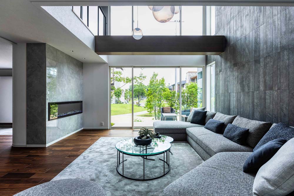 ダイナミックな吹抜け。オーセンティックなイメージにグレイッシュモダンな要素を加えたインテリア。 賃貸併用も、1.5世帯同居もイメージできる、都市にありながら閑静さを楽しめる上質な堂々たる邸宅。