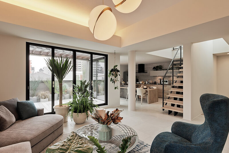 大空間・大開口の解放感たっぷりなLDK、ご家族で楽しめる屋上、こだわりのインテリア、