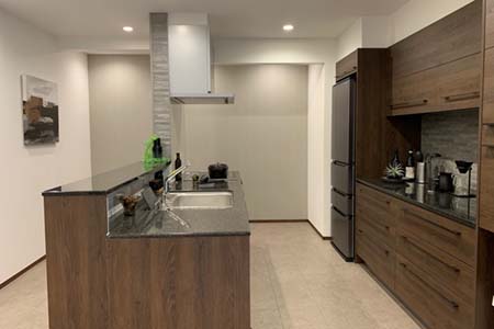木目と同調する彫りの深い凹凸感が魅力の「グレイスシリーズ」のキッチンやドレッサーは、デザインだけでなく機能性も追求。