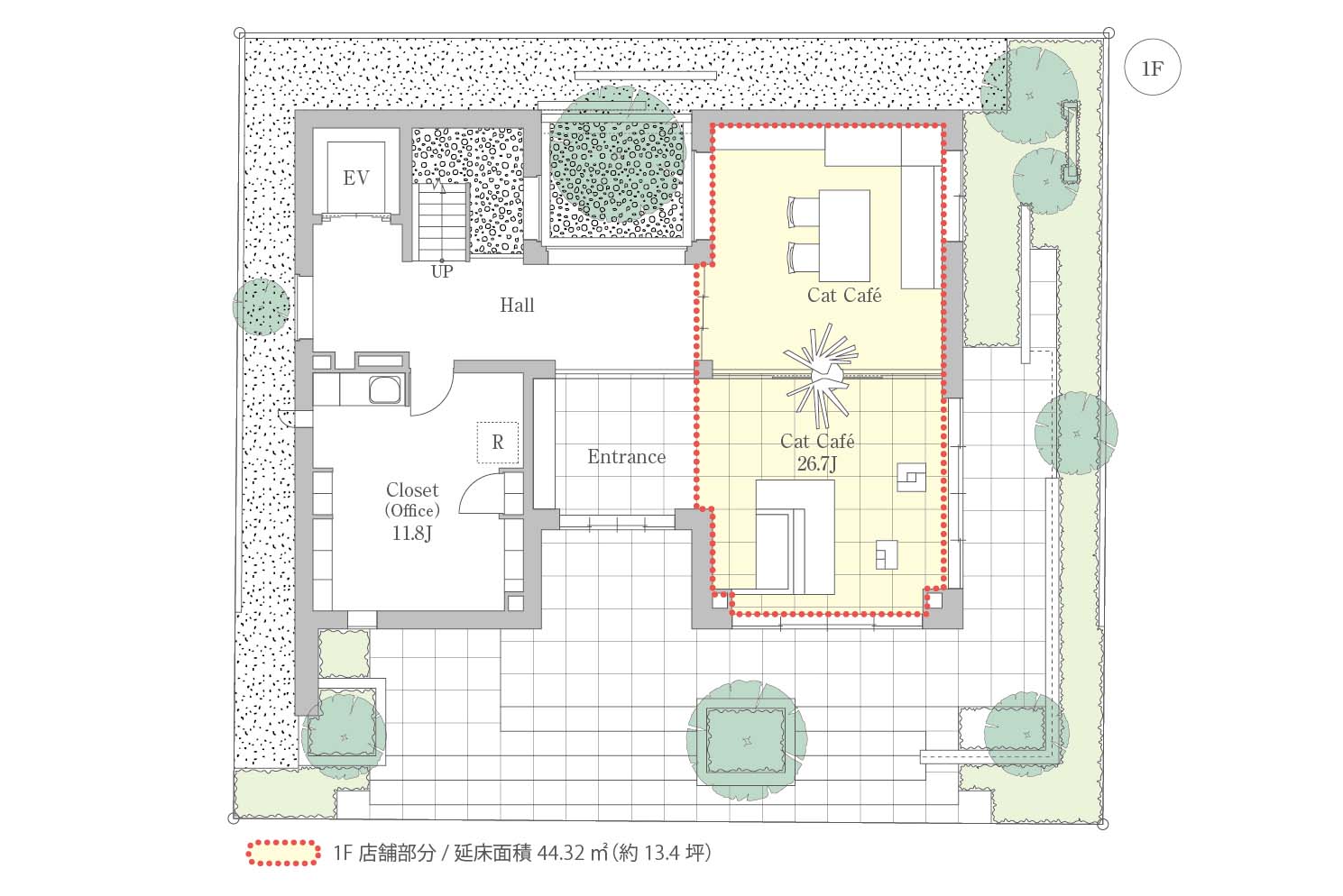 ・1階 店舗は「猫カフェ」をテナントスペースとして展示。店舗・事務所と住まいについて建物外観・間取り・内外装・什器など、ダイワハウスの専門家によるご提案をいたします。