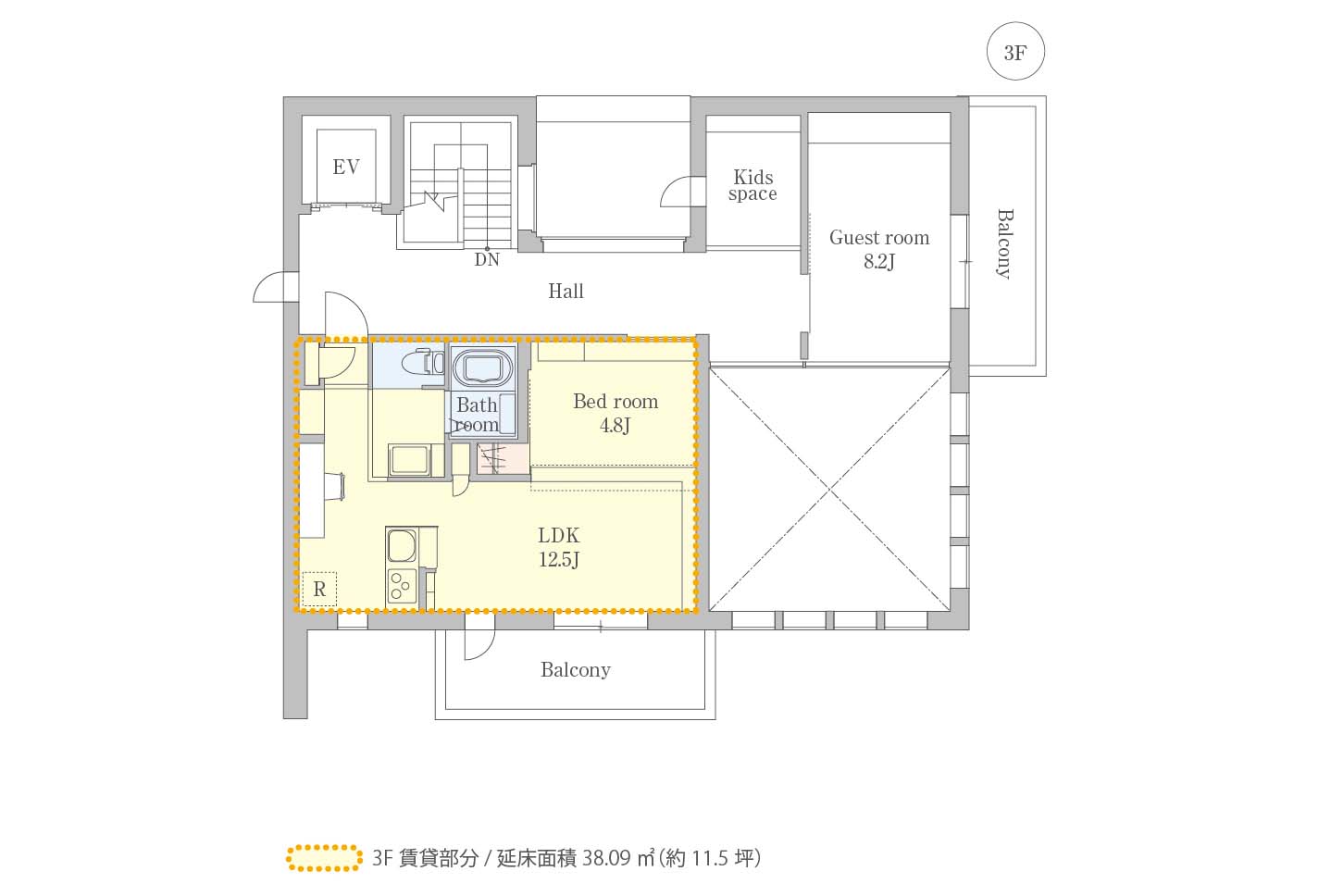 ・3階 賃貸住宅はペットと暮らせるD-ROOM。床材はペットの足腰の負担を軽減できる「ワンラブフロア」を採用。賃貸住宅の付加価値として「ペット同居型賃貸」のご提案をいたします。