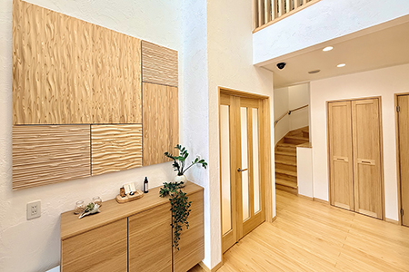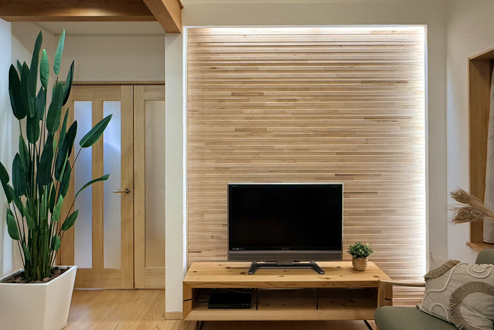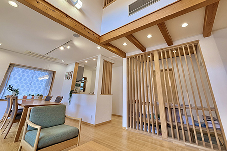 敷地条件とお客様の趣味・思考に合わせた古河林業だからこその化粧木材を組み合わせたオリジナル提案