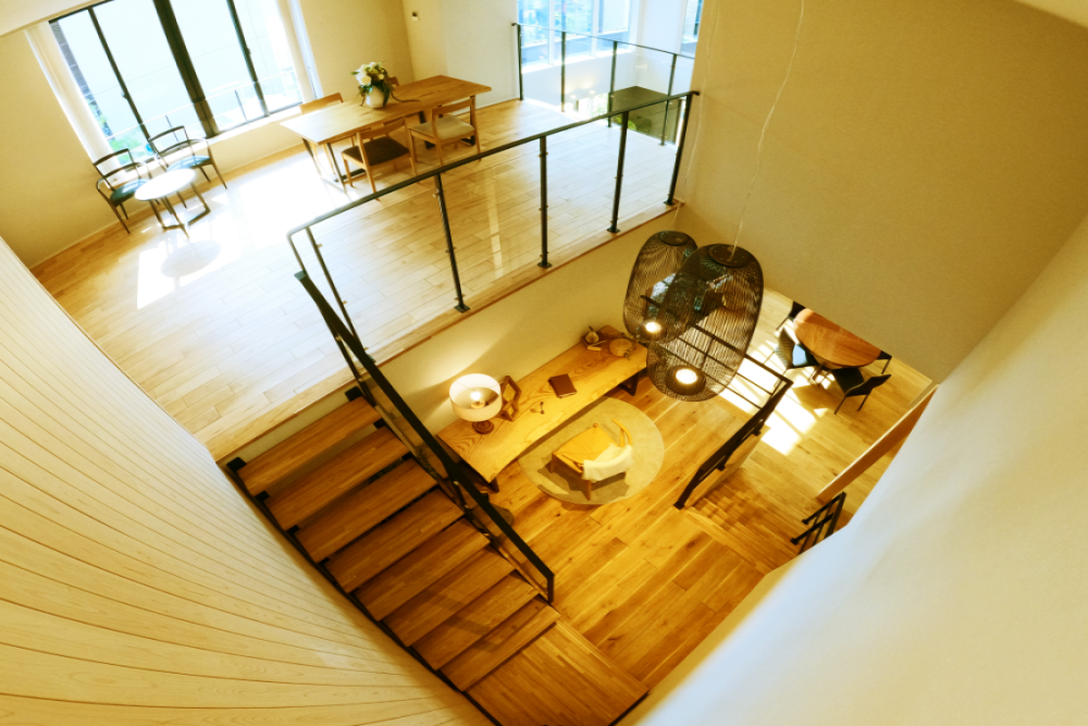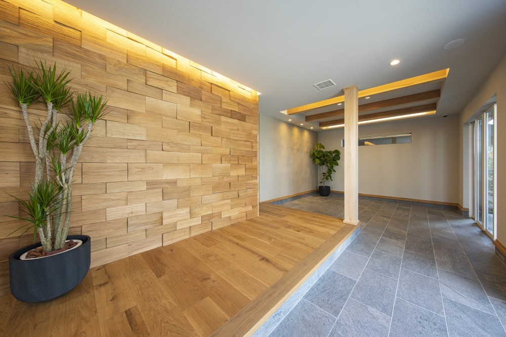 木目を基調に石やタイル、スチールなどの異素材を組み合わせ。木の魅力を引き出しながら、美しく印象的な空間を演出します。