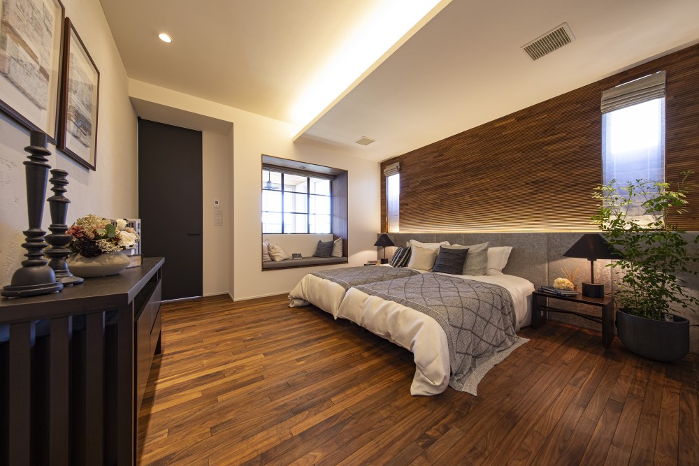 美しい木目と豊かな表情を持つ木材を使用し、床、天井、壁などに設えることで空間を演出。