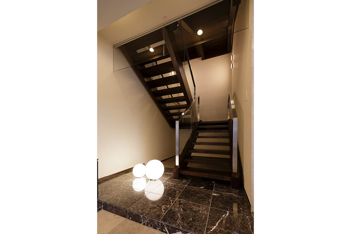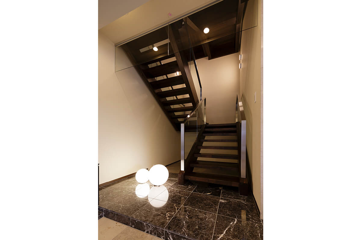洗練されたデザインのリビング階段は空間にインパクトを与えています。