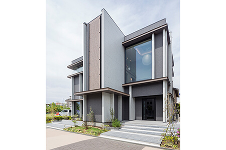 【外観】グレード感『彫の深さ(奥行)』のある色づかい。 【空間】階段⇒木造では実現できない軽やかな階段。WIC⇒ただ「しまう」だけの収納から「飾って楽しめる」収納に。