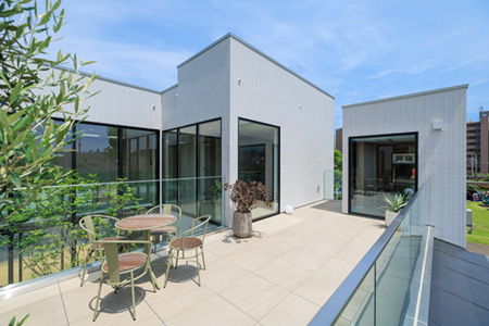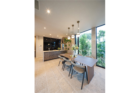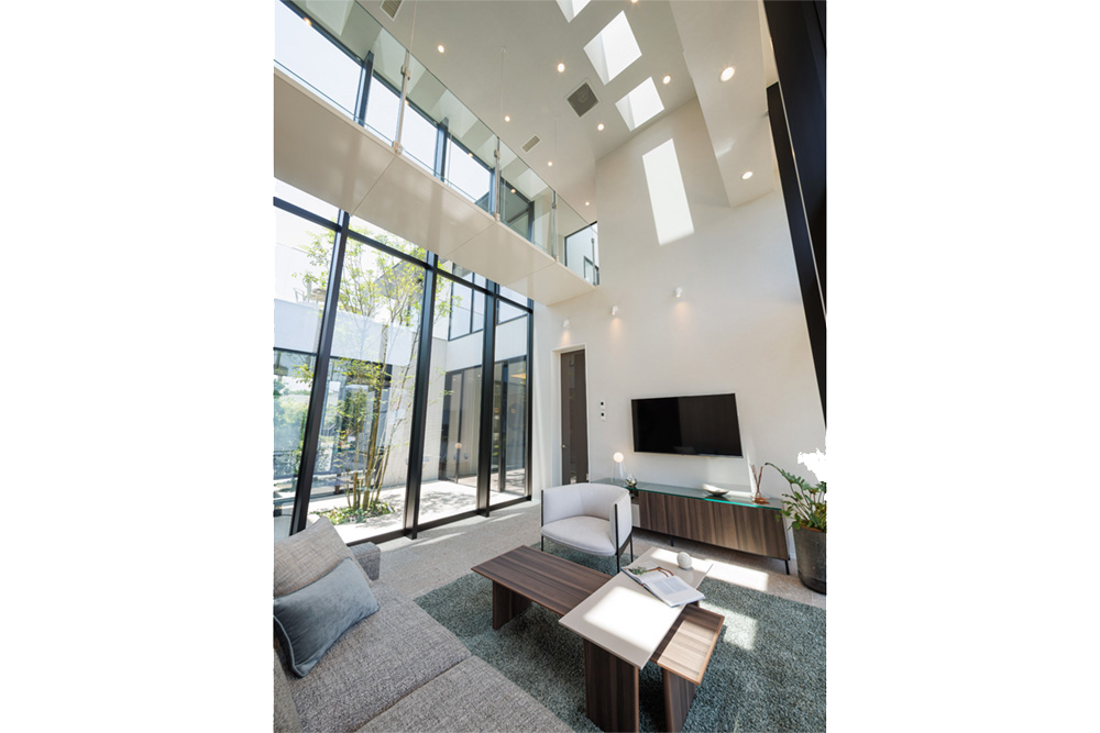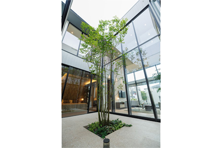 中庭を中心に光と風が巡る構成や、視線を通すガラスの配置が空間に広がりをもたらす。
