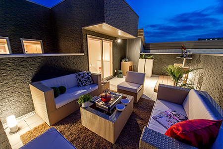 屋上庭園「青空リビング」はホームパーティやバーベキューを楽しみながら家族や友人とゆっくり時間を過ごすことができる場所。
