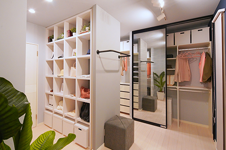 その他、大容量でスッキリ収納できる「ブティッククローゼット」や忙しい朝にも便利でデザイン性に優れたオリジナル洗面「フーガ・デュオ」など、これから始まるマイホームづくりと新生活をより豊かにするための具体的なアイデアがたくさん詰まった展示場です。