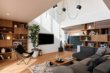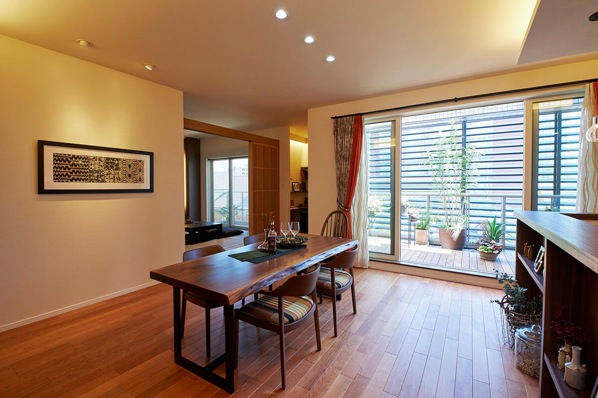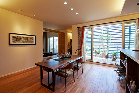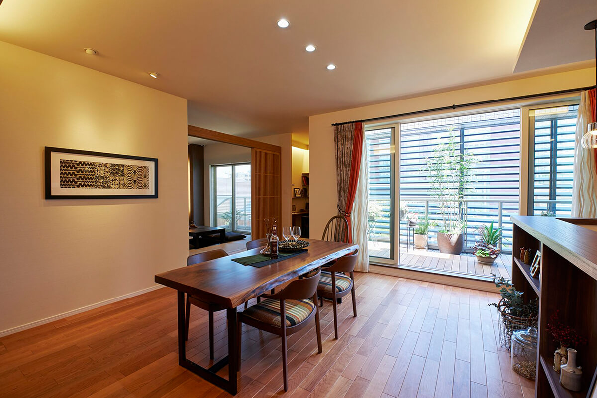 両世帯が集まって食事をしたり、くつろいだりできるスペースを確保しながらの、お互いのプライバシーは確保しつつ、行き来しやすいお家。