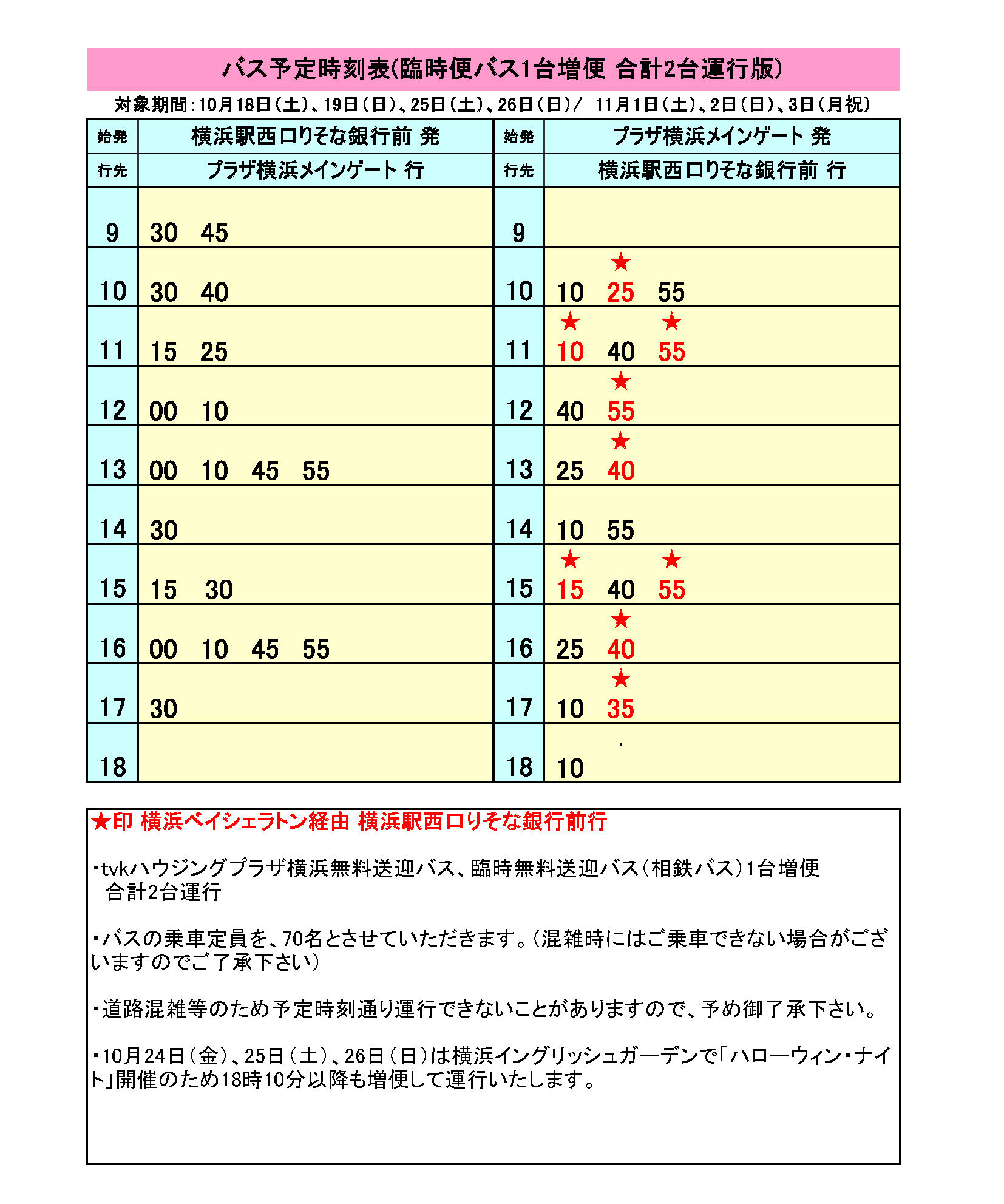 ※★印の時刻は横浜ベイシェラトン経由、横浜駅西口りそな銀行前にて運行します。